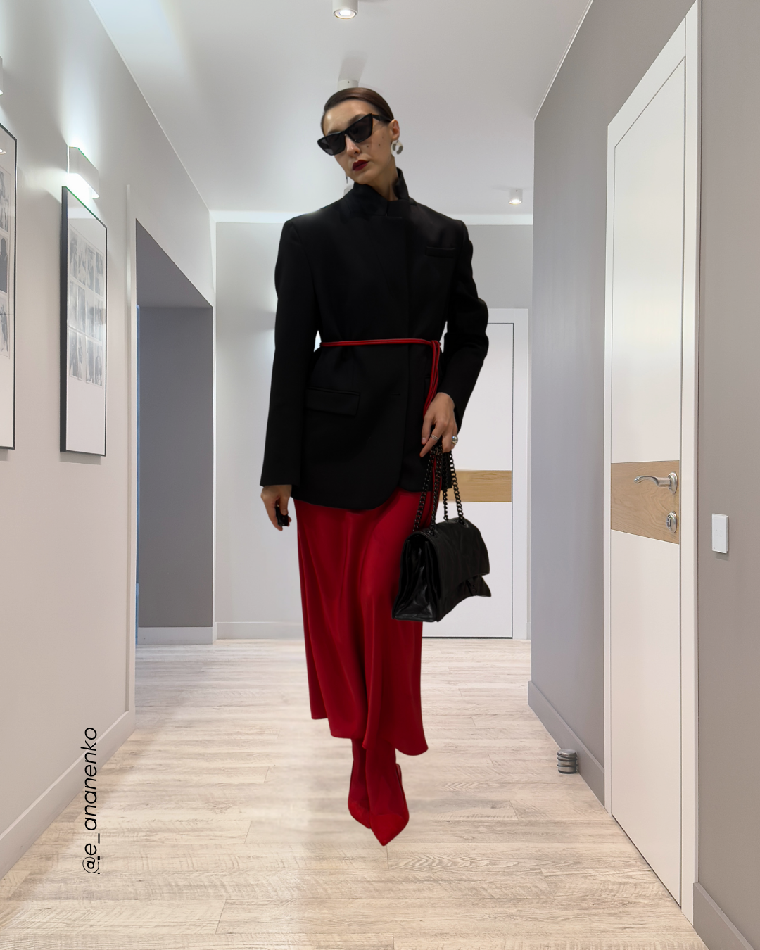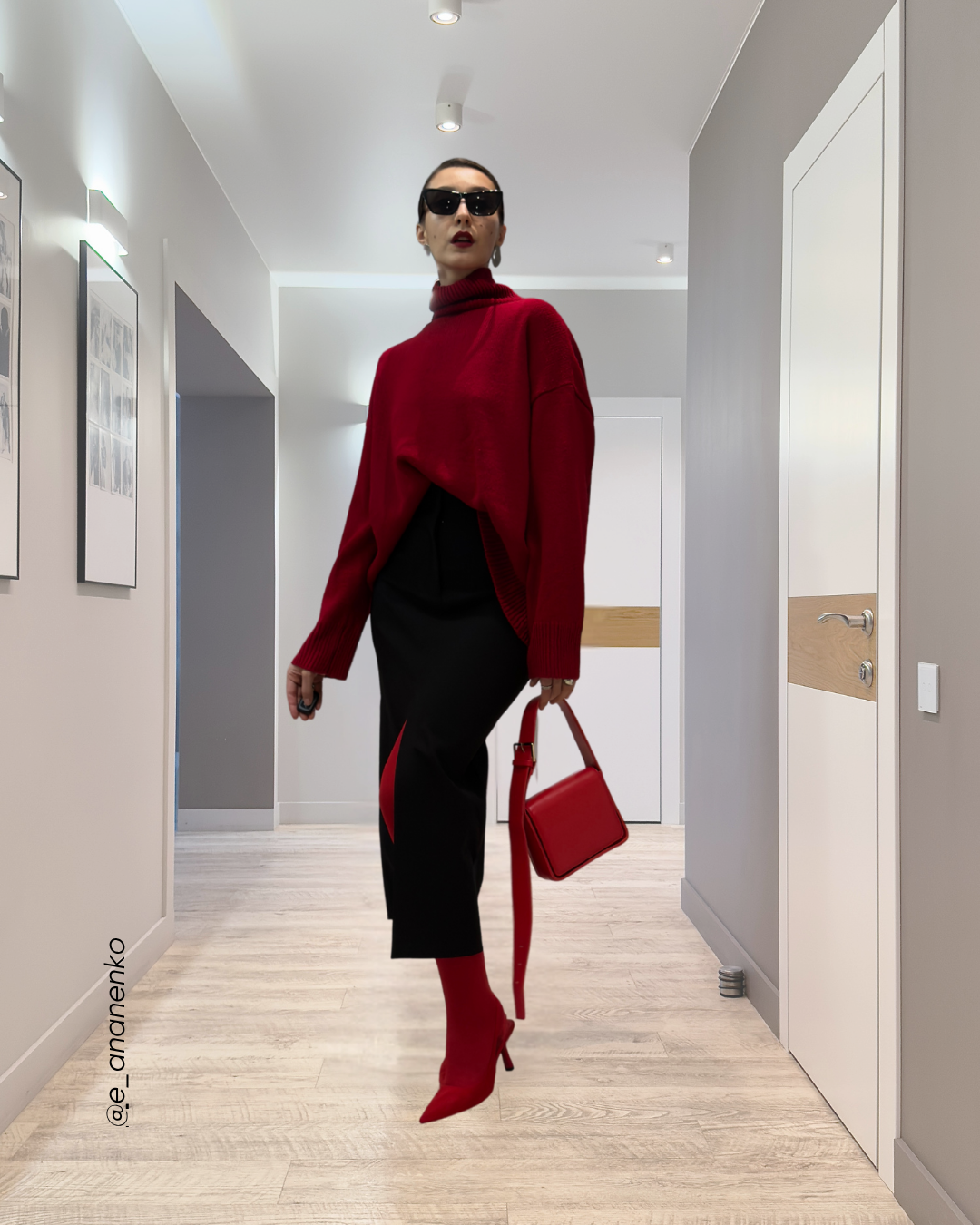 Акцент в аксессуарах: Алые туфли, клатч или ремень — инвестиция, которая будет работать с 90% вашего гардероба. Они добавляют базовому комплекту индивидуальности и завершенности. ·